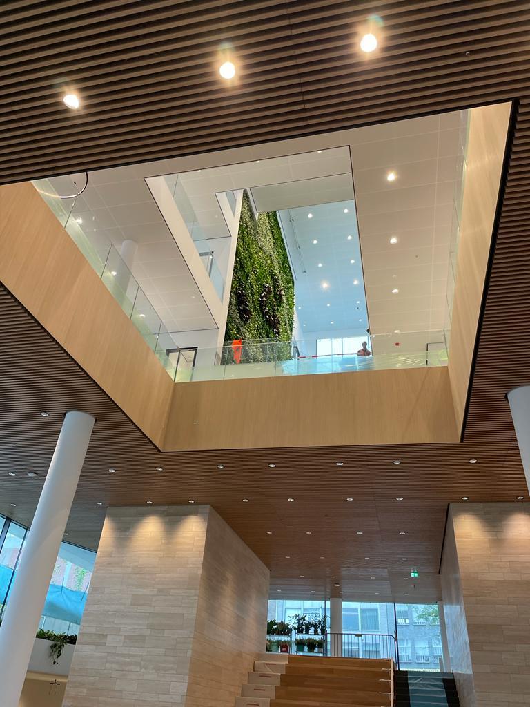 The new and modern building is equipped with variable volume controls (VAV). These are used in the air transport system to be able to vary the air quantity depending on the occupancy demand (for example on the basis of CO2 or temperature). This design saves energy. The Solid Air grilles used are both perforated and swirl grilles. This means that the air is blown in draught-free, resulting in a comfortable indoor climate.