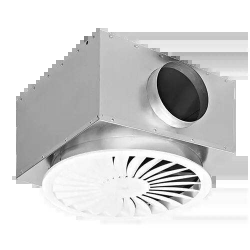 The RTBC is a surface-mounted diffuser in round shape. The swirl technology creates an extremely stable inflow pattern. The diffuser is suitable for large air volumes with extremely large temperature differences in respect of the room.