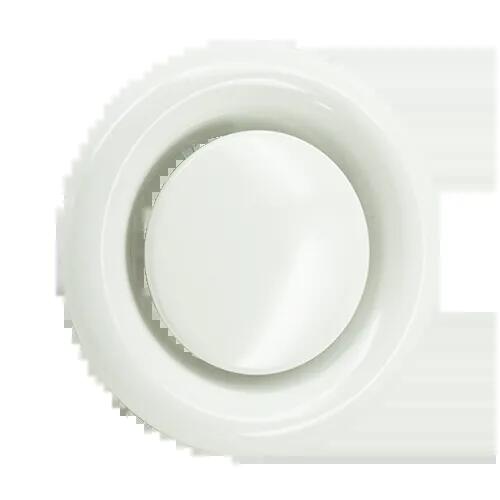 The RRSV is a round extraction valve that can be used in walls or in ceilings. The valve is suitable for extracting limited air volumes. The RRSV has a central disc that is used to set the air volume manually. The air volumes can be set properly for these valves, ensuring low noise levels.